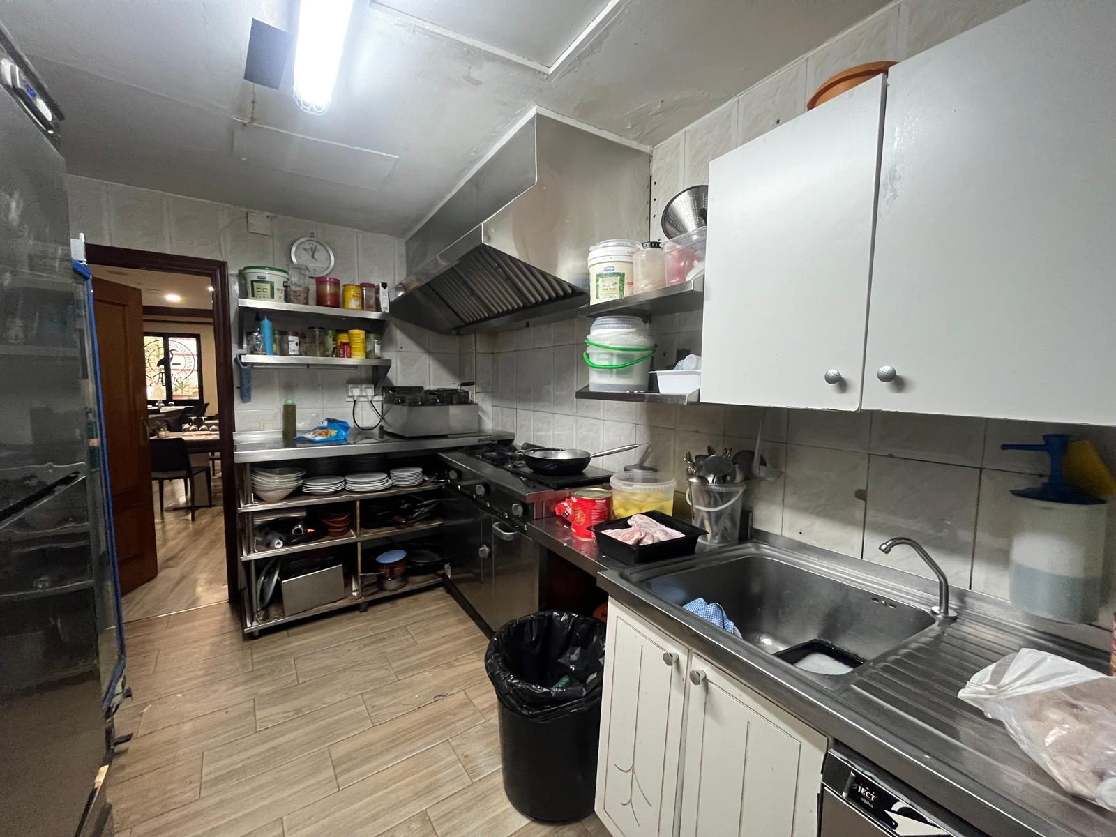 Se distribuye en una zona de cafetería, dos baños, cocina y un restaurante con una capacidad de 80 comensales. Además, dispone de una terraza delantera y trasera con barra y dos almacenes.
